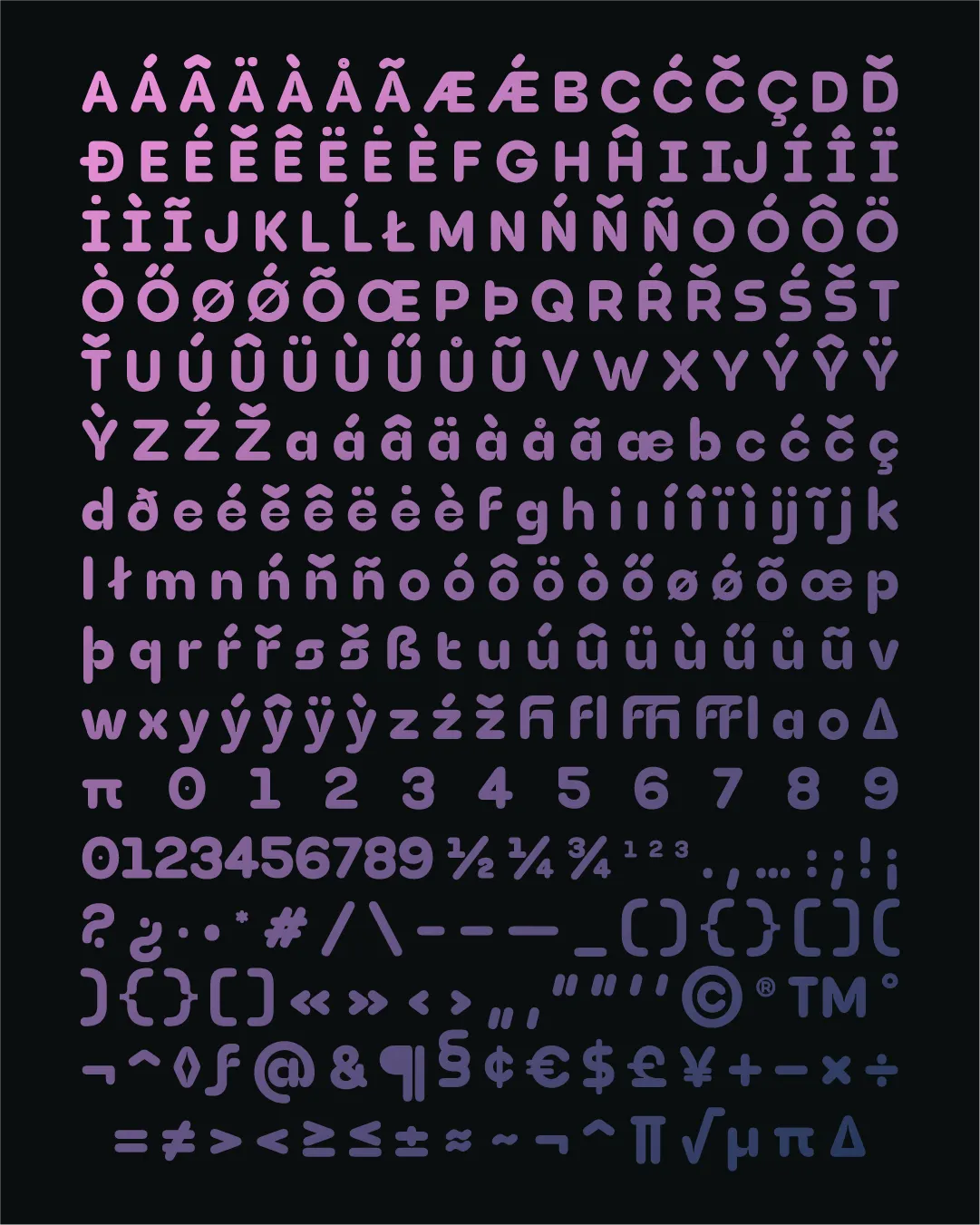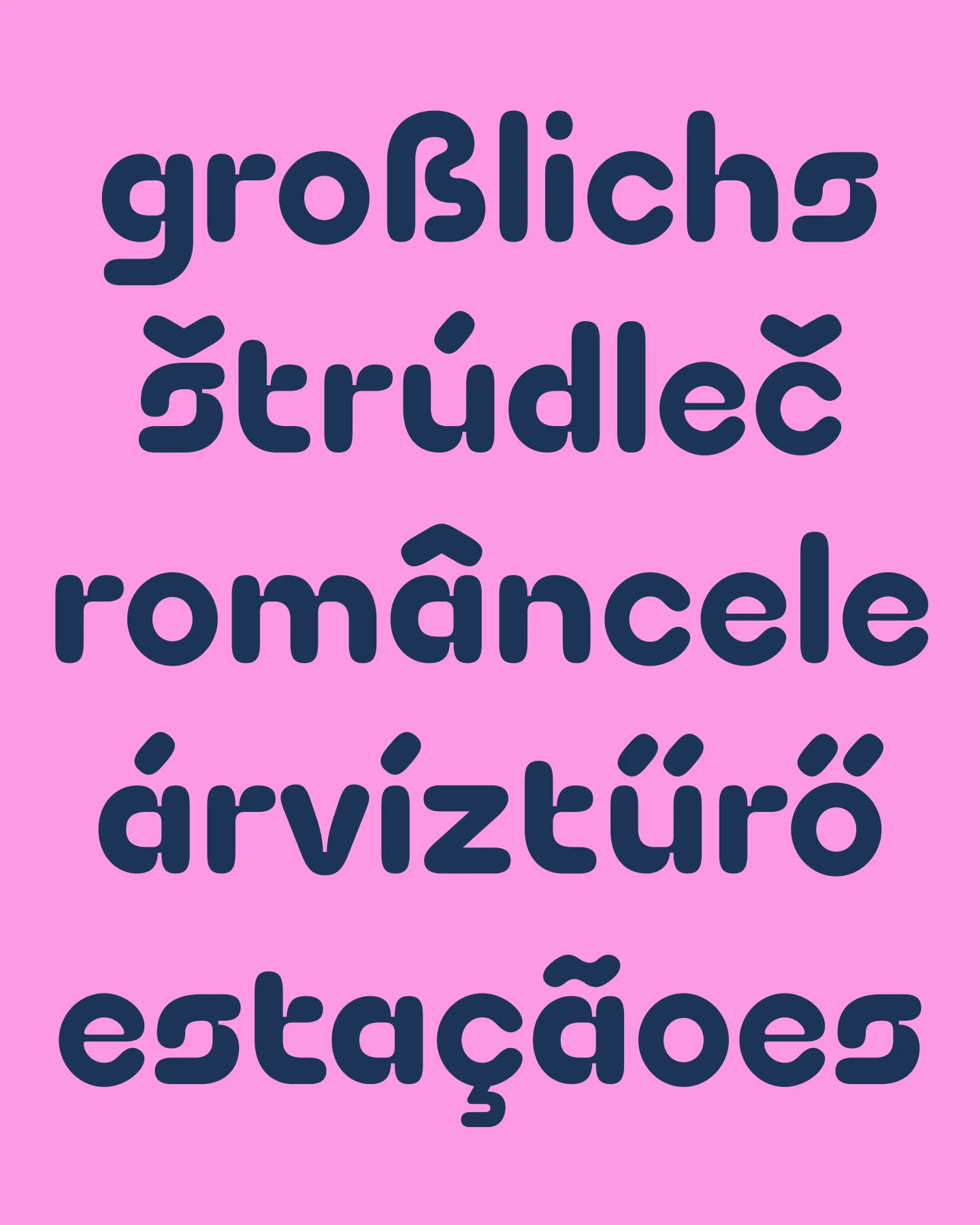 Inspired by rounded lettering and type in magazines and street signs, they wanted to make a distinctive rounded font that starts almost mono-linear but finds its character in precise inktraps that give it a modern and retro-futuristic feel.