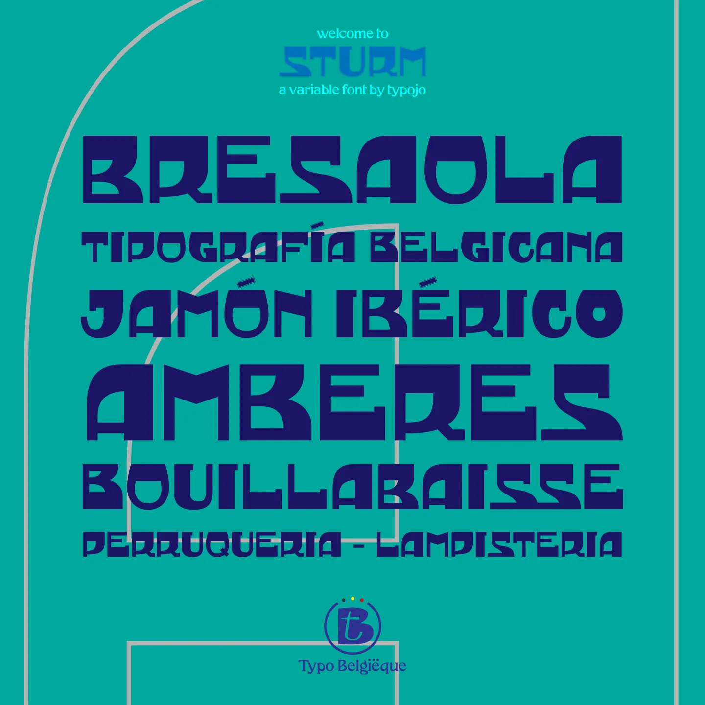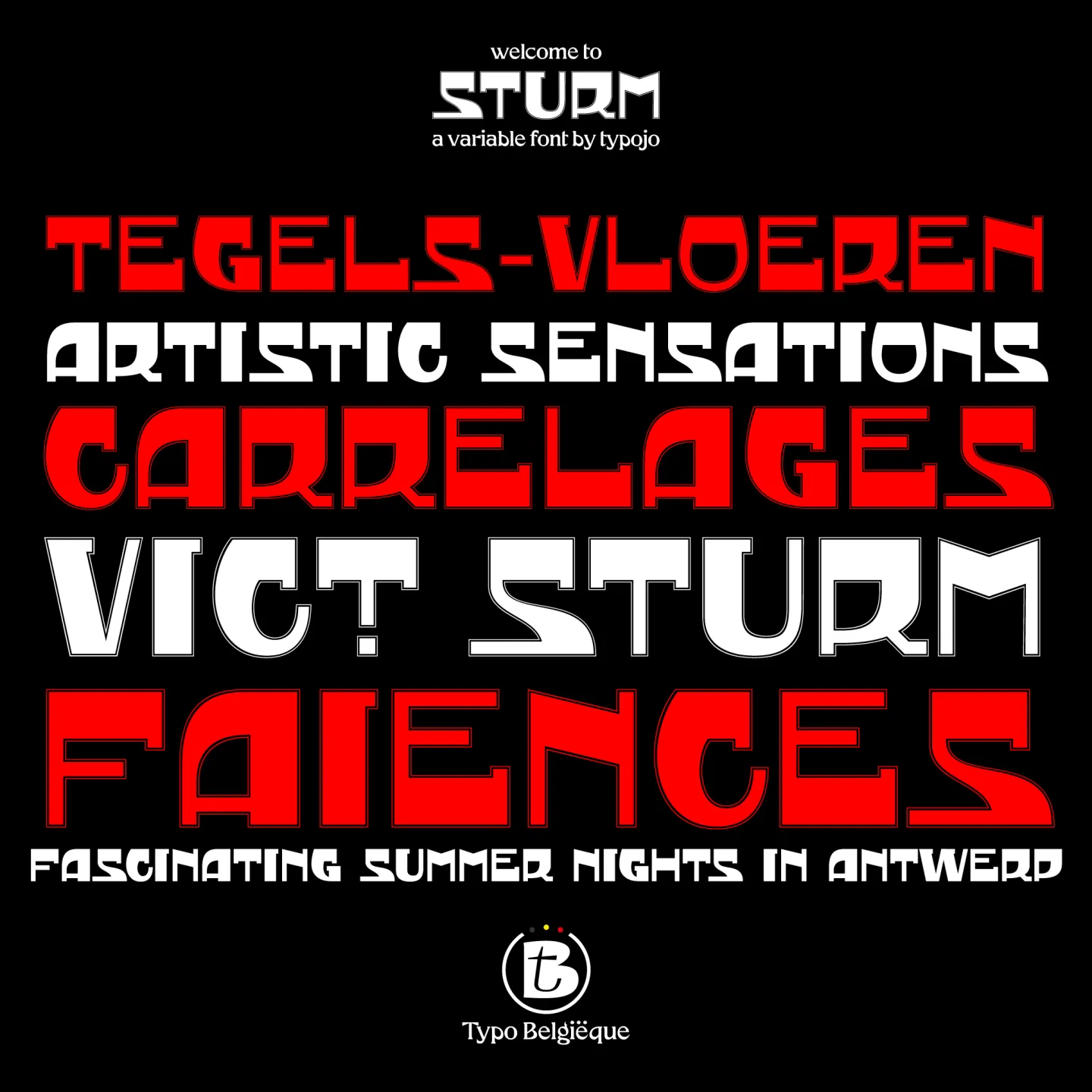Sturm is part of ‘Typo Belgiëque’, a practice oriented scientific research & type design project examining the visual design identity of Belgium in the nineteenth and twentieth century that breathes new life into Belgium’s historical typeface families. ◊